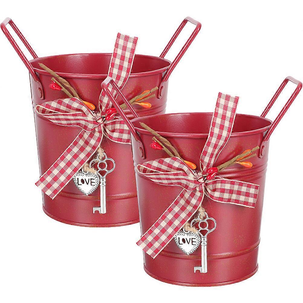 2pcs Christmas Metal Planter Desktop Flower Pot Storage Bucket Vase with Handle for Home Decoration