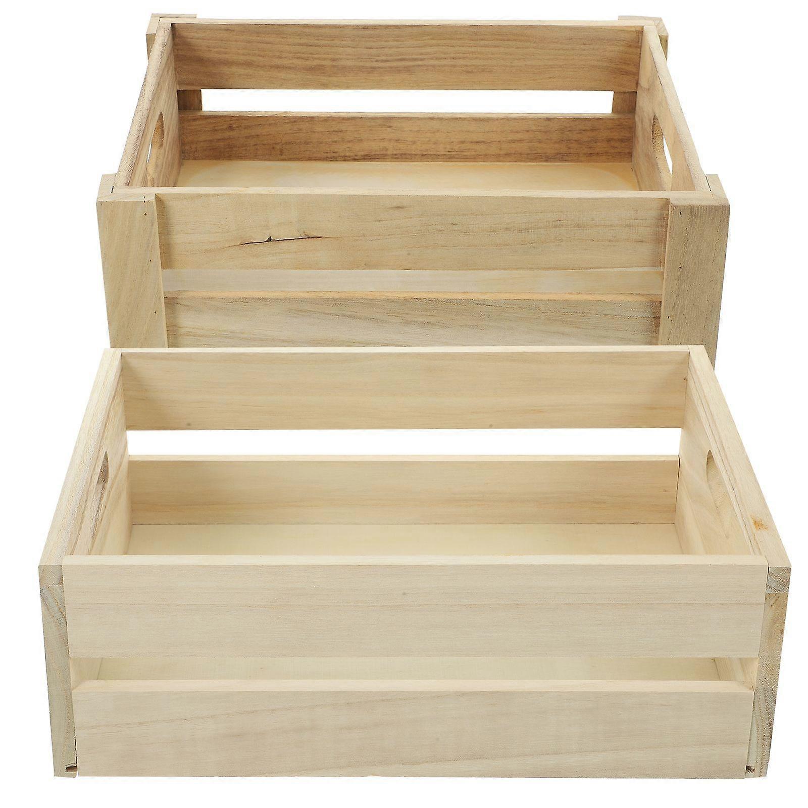 2pcs Wooden Storage Crate Hollow Handle Wood Crafted Boxes for Home Shop