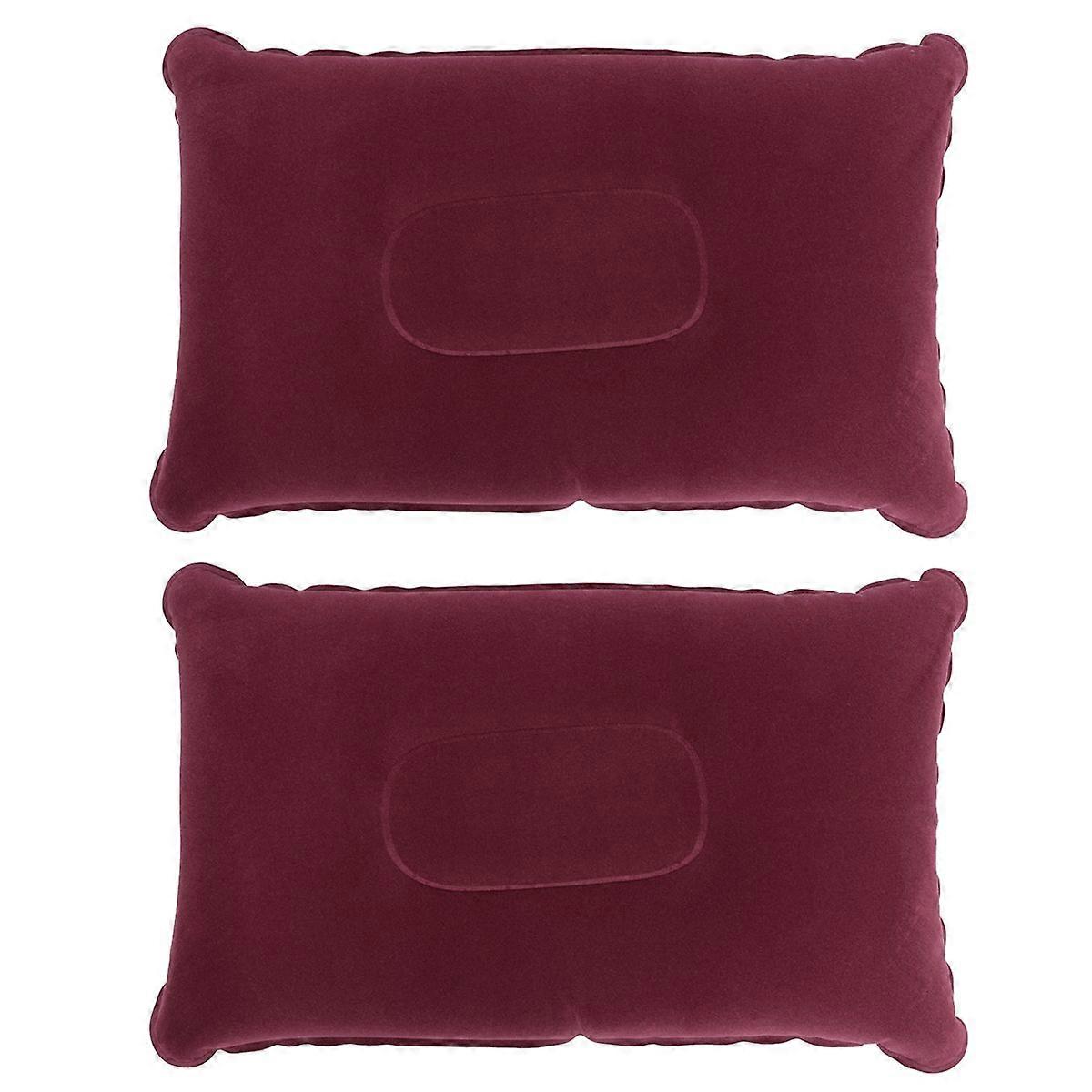2pcs Super-thick Flocking Fabric Inflatable Pillow Portable Travel Pillow for Outdoor Activities (Purplish Red)