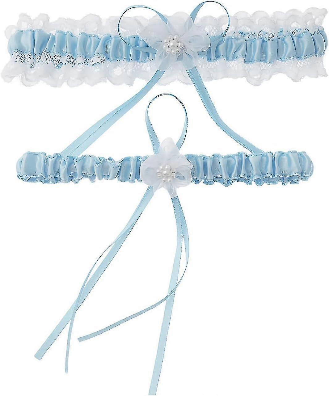 2 Pcs Blue Wedding Garter for Brides Lace and Ribbon Bow Elastic Garter Wedding Accessories Gift for Bride, for Wedding, Party, Bridal Shower, Engagem