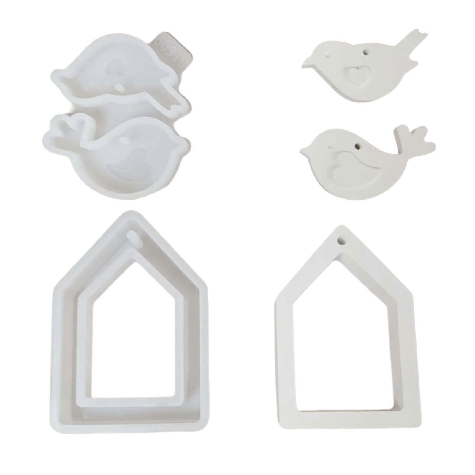 2 Pcs House with Bird Molds Castings Molds Silicone Molds Bird Pendant Plasters Molds Epoxy Resin Molds for Craft Making