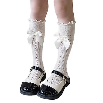 2Pcs Girls Socks Wavy Lace Hollow Mesh Lovely Good Breathability Spandex Bowknot Design Japanese JK Socks Party Supply