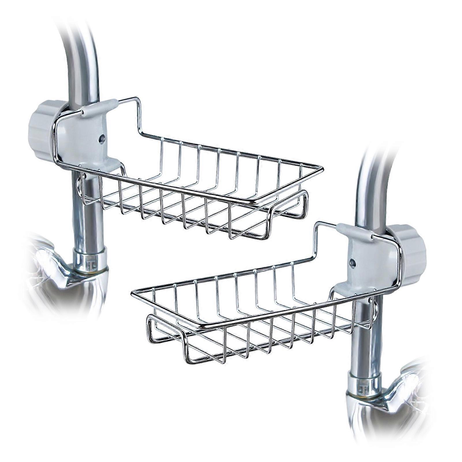 2Pcs Faucet Storage Rack Sink Sponge Holder Rustproof Corrosion Resistant Hollow Design Adjustable Detachable Sponge Holder Sink Organizer Jikaix