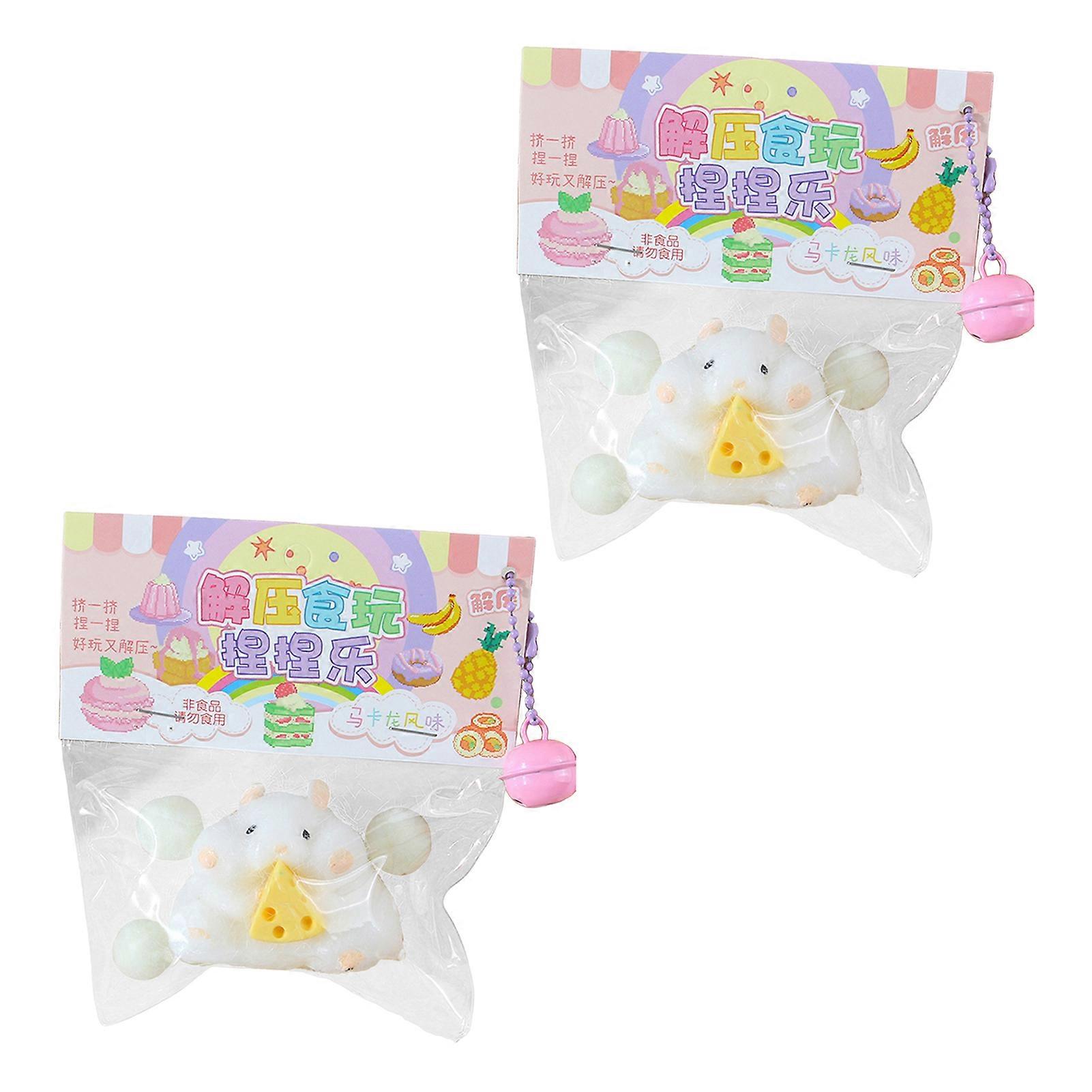 2Pcs Cheese Hamster Pinch Toy Slow Rebound TPR Stress Relief Animal Squishes Sensory Fidget Squeeze Toy Kids Adults Birthday Gift