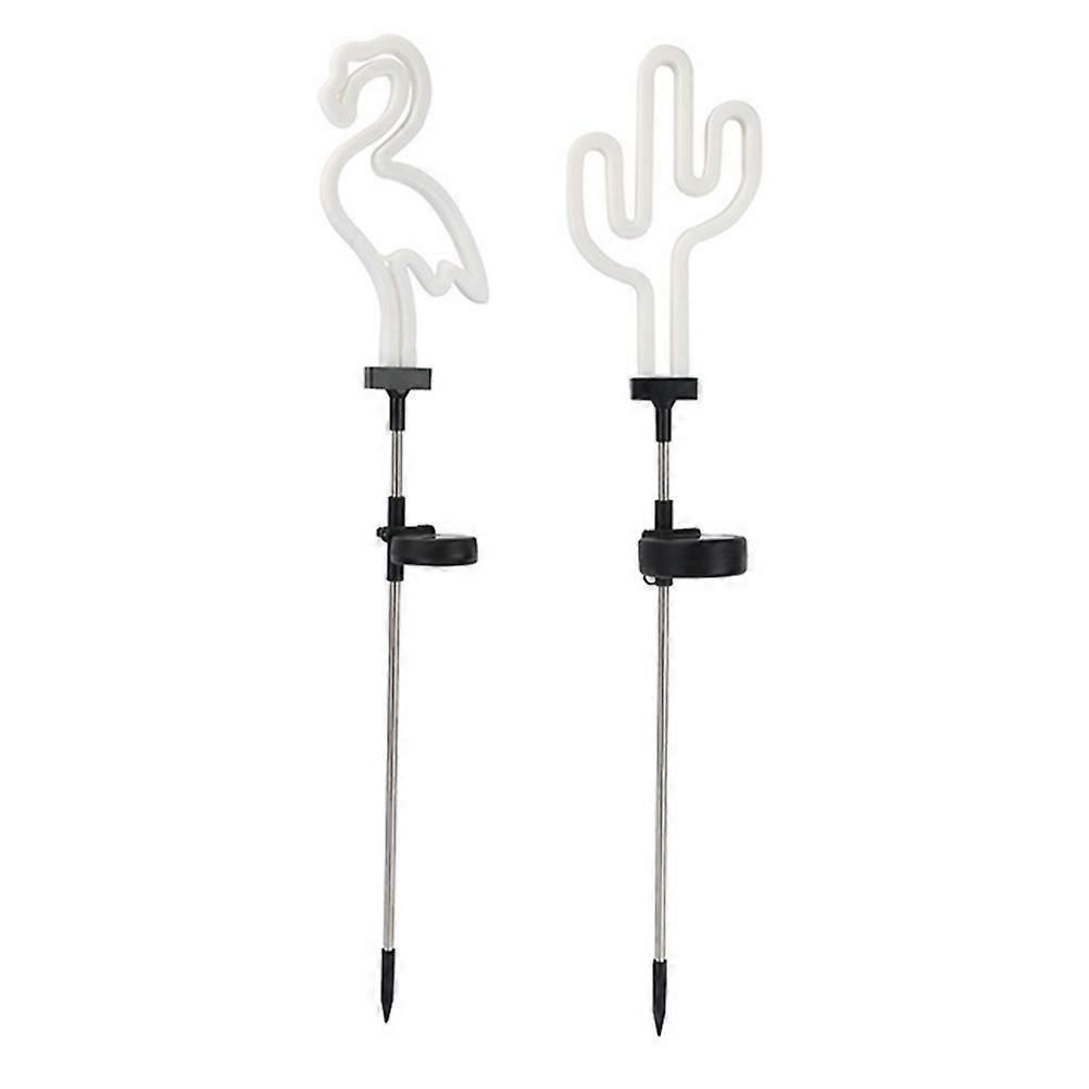 2Pcs Solar Garden Cactus Flamingo Stake Lights Outdoor Pathway Light Neon Light