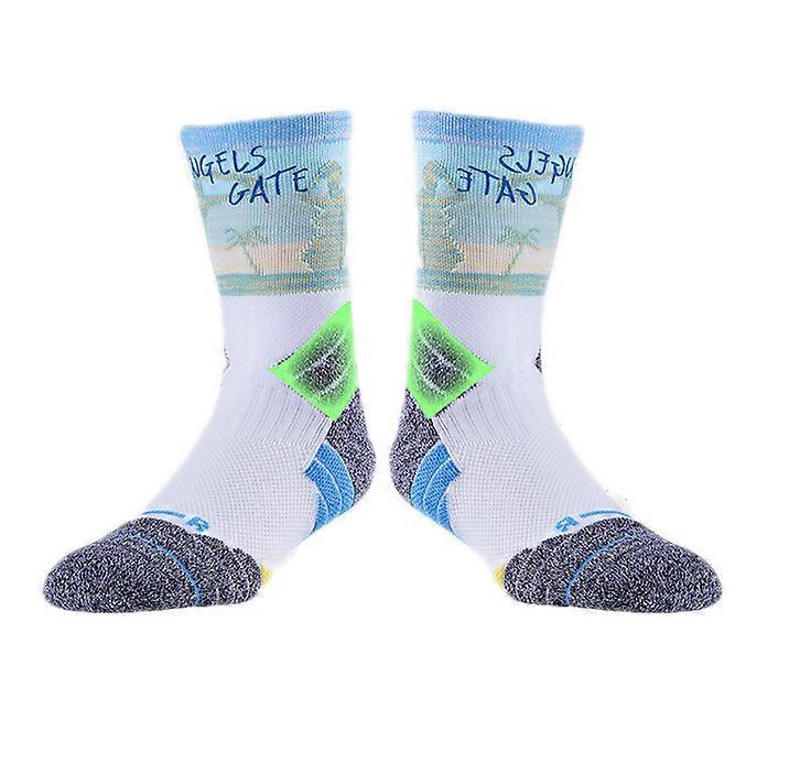 Athletic crew socks featuring moisture-wicking or moisture-management fibers and air-circulating ventilation channels and keep your feet dry and comfortable. The best for hiking, cycling, camping, running, jogging, mountain biking, travelling, lacrosse, tennis, golf and other outdoor activities. It's soft and thick, cushioned footbed,Reinforced heel and toe. Color: A, B, C (Optional) Package Including: 2 x Basketball Socks