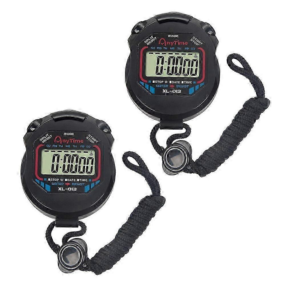 2pcs Digital Professional Handheld LCD Stopwatch Sports Chronograph Timer with Alarm Feature for Kids Runner Sports Fitness and Referees XL-013 (