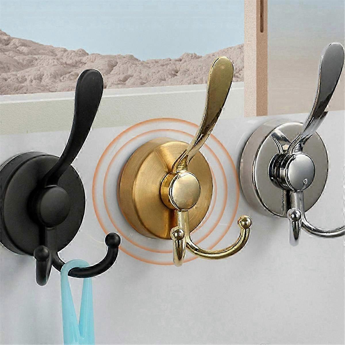 2pcs Strong Reusable Double Hook with Rust-Proof Stainless Steel Base for Clothes - Black