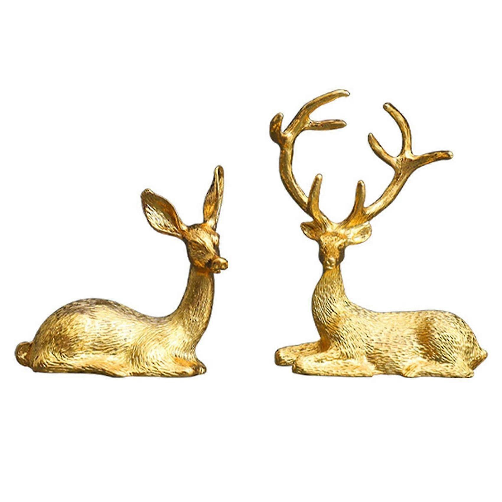 2 PCS Noble Couple Deer Statue Home Decor Collectible Animal Elk
