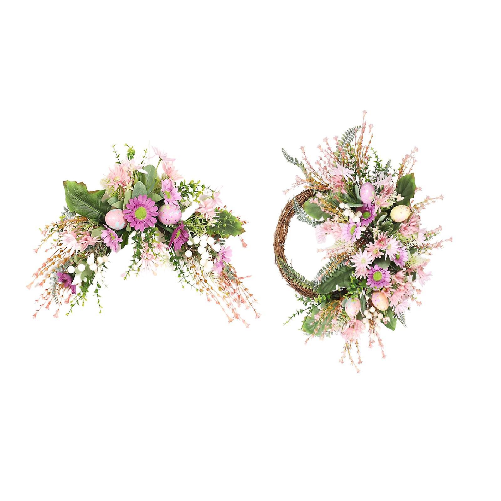 2 Pcs Easter Wreath Garland Colored Eggs Indoor Outdoor Spring Wreath