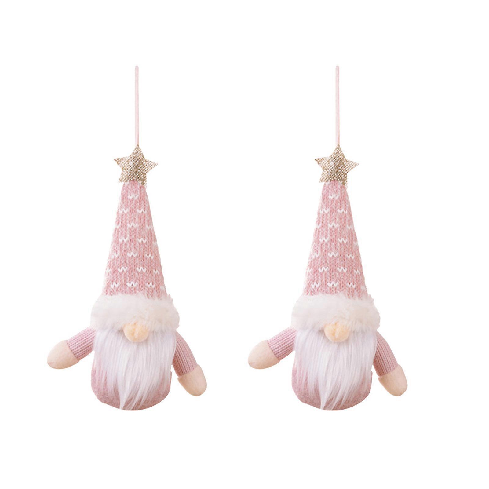 2Pcs Christmas Gnome Hanging Decoration Pink Knitted Hat Full Beard Reusable Holiday Decor Xmas Tree Dwarf Plush Ornament Pendant Party Festival Gift