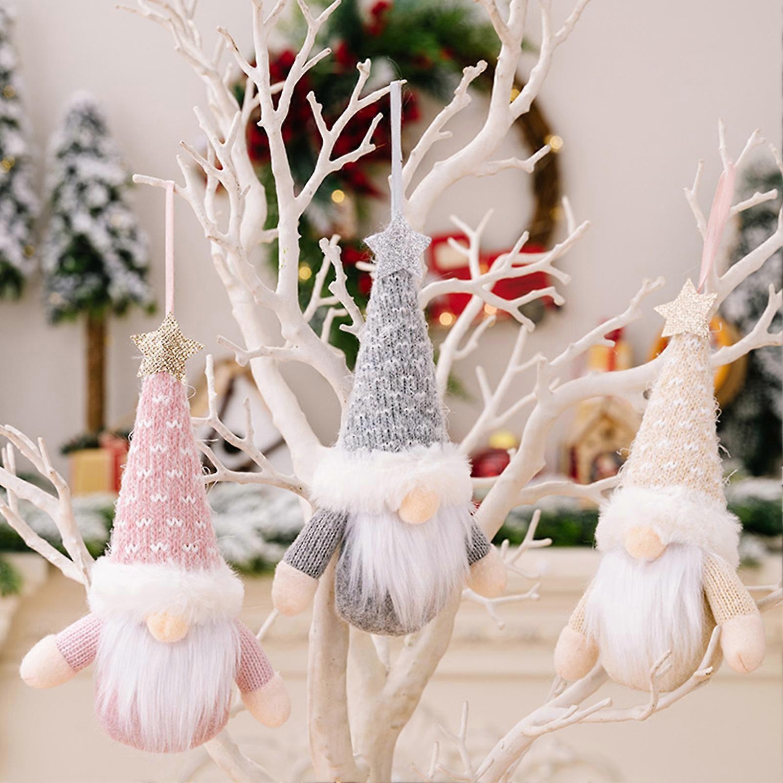 2Pcs Christmas Gnome Hanging Decoration Pink Knitted Hat Full Beard Reusable Holiday Decor Xmas Tree Dwarf Plush Ornament Pendant Party Festival Gift