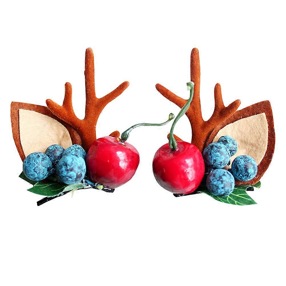 2Pcs Christmas Deer Antlers Hair Clips Fake Berries Hairpins Hair Barrettes