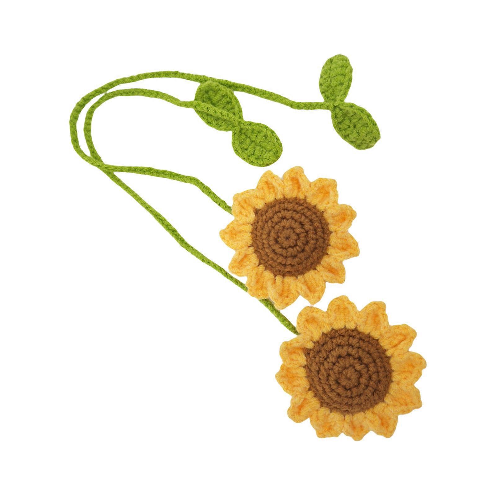 2pcs Sunflower Crochet Car Mirror Hanging Accessories Handmade Car Mirror Pendants for personalizes Vehicle decors Multicolor