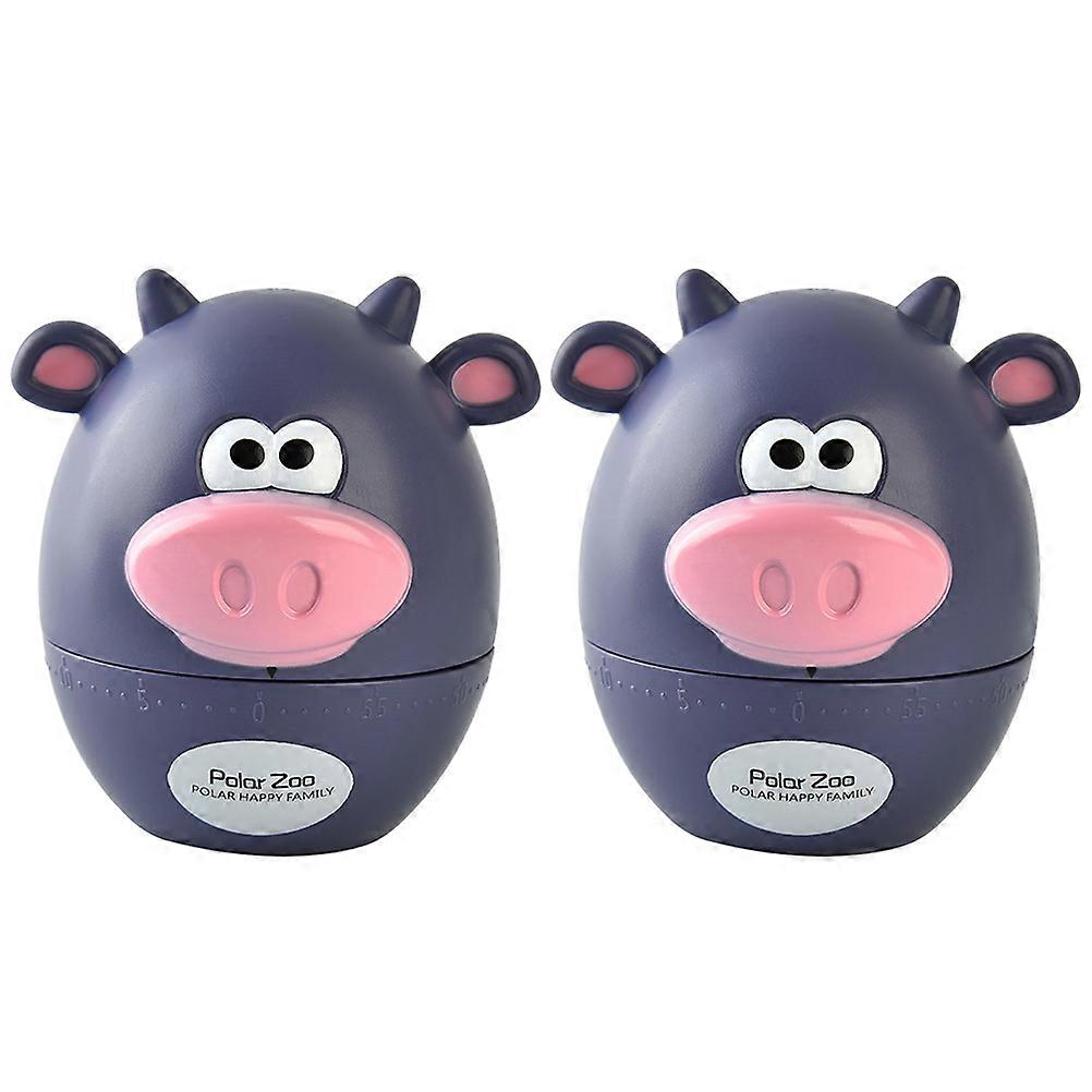 2Pcs Kitchen Timer Cartoon Calf Baking Reminder Clockwork Mechanical Countdown Timekeeper Cooking Supplies (Purple)