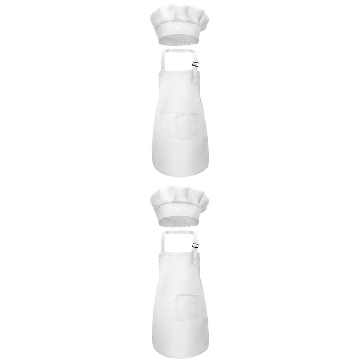 2Pcs Kids Apron Chef Hat Sets Adjustable Bibs for Crafting Baking