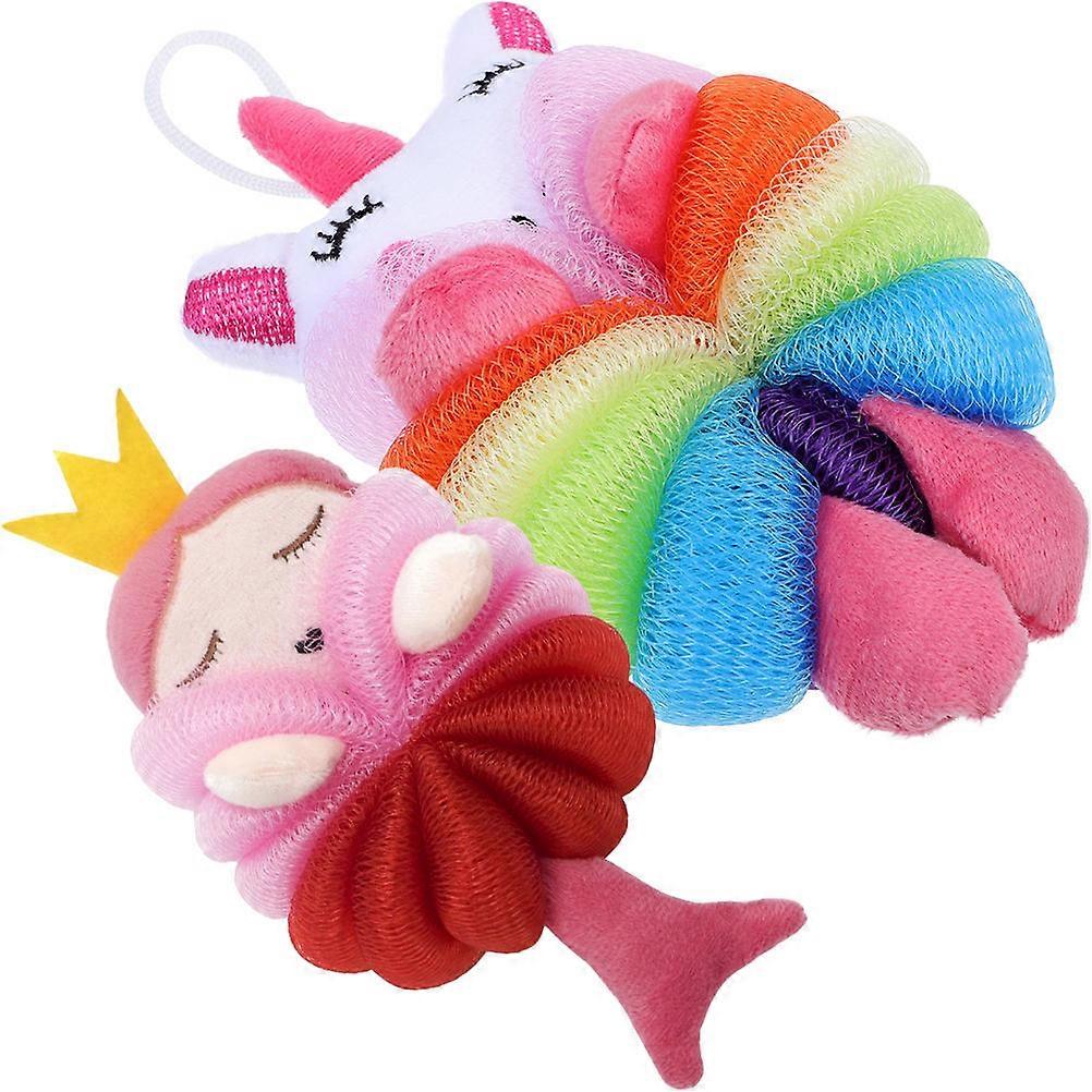 2pcs Cartoon Bath Ball for Toddlers Mild Shower Loofah Distraction Toy Kid friendly Loofah