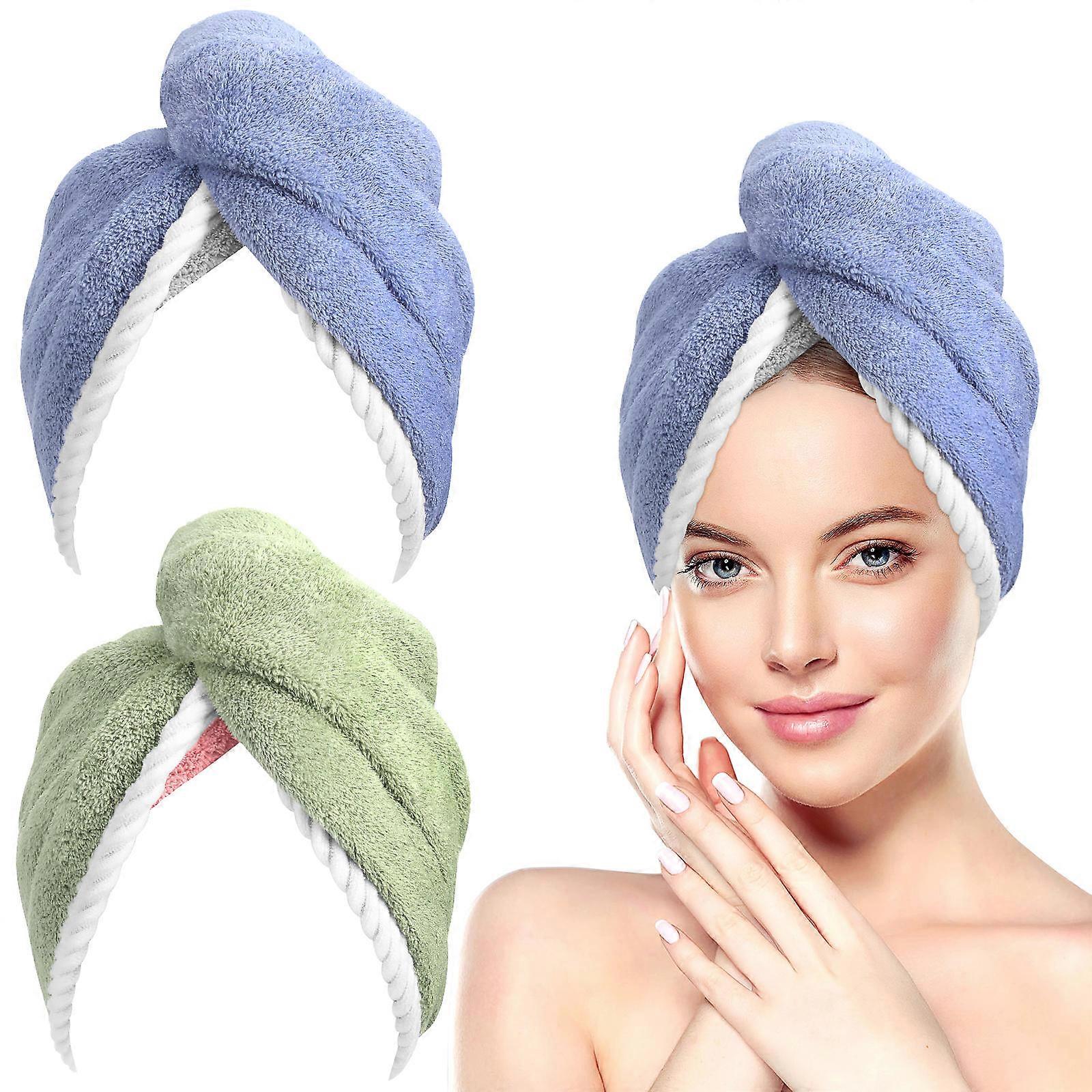 2Pcs Hair Drying Hats Coral Fleece Super Absorbent Hair Towel Wrap Quick Dry Hair Turban for Women
