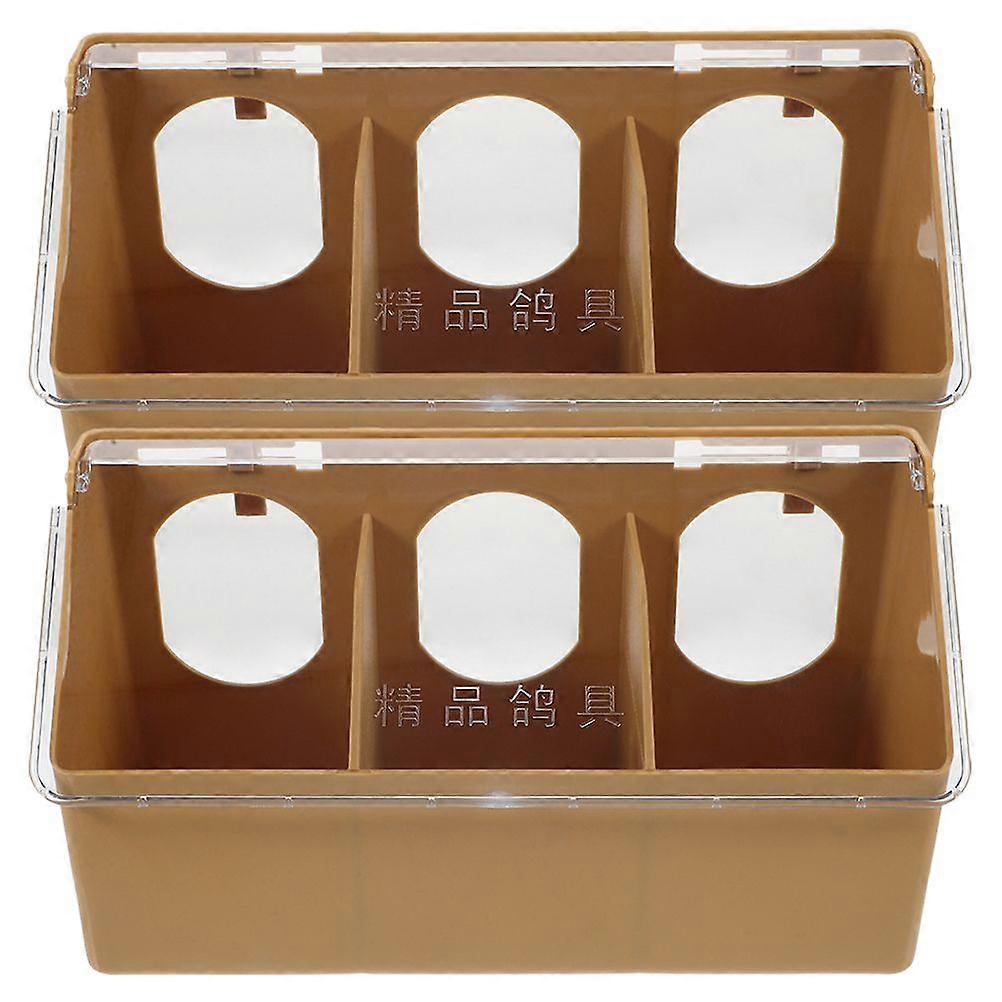 Description Are you tired of feeding food for your birds?If yeas, our bird food feeder iscarefully prepared for you. It allowsyour small birds to eat from this food feeder without wasting and keeping yourcagecleaner. And thisBird Cage Feederis safe for feeding and drinking, more practical for parrots. Features - Color: Brown -Material:Plastic - Size: 25.00X14.00X10.00cm/9.82X5.50X3.93in - Just install it into your pet cage, which is not easy to fall while feeding, multi-function and practical. - It comes with the practical simple structure, provides you with quick and simple installation. -Easy to clean and wash, very simple to fill and use, a great bird food box for bird cage. - The scientific design makes Bird Feeder have a larger capacity, making it easier for you to use. - You can install it on the cage, it can be used to hold food, useful and convenient. Package list: 2 x Pigeon Feeders