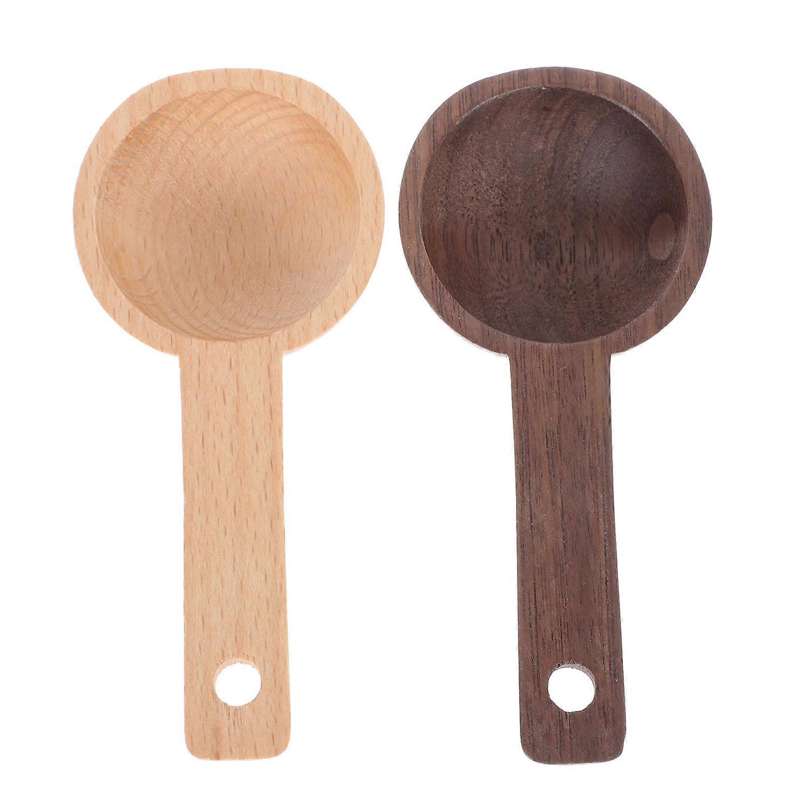 2pcs Measuring Spoons, Beech & Walnut Wood Coffee Scoops for Beans, Milk & Kitchen Use with Comfortable Grip, Home & Restaurant Grade