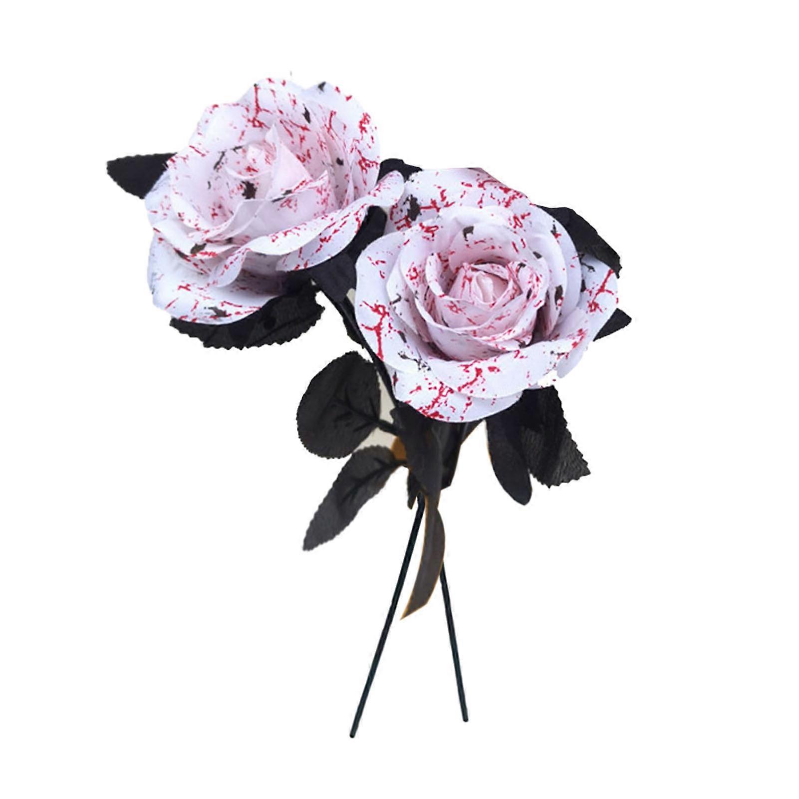 2Pcs Halloween Artificial Flower Decoration Realistic Blood Rose Bouquet Fake Flowers for Ghost Festivals Parties Home Decor Qinghai