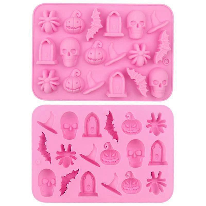 2 Pcs Halloween Chocolate Molds Skull Pumpkin Spider Witch Hat Shape Food Grade Easy Release Reusabl