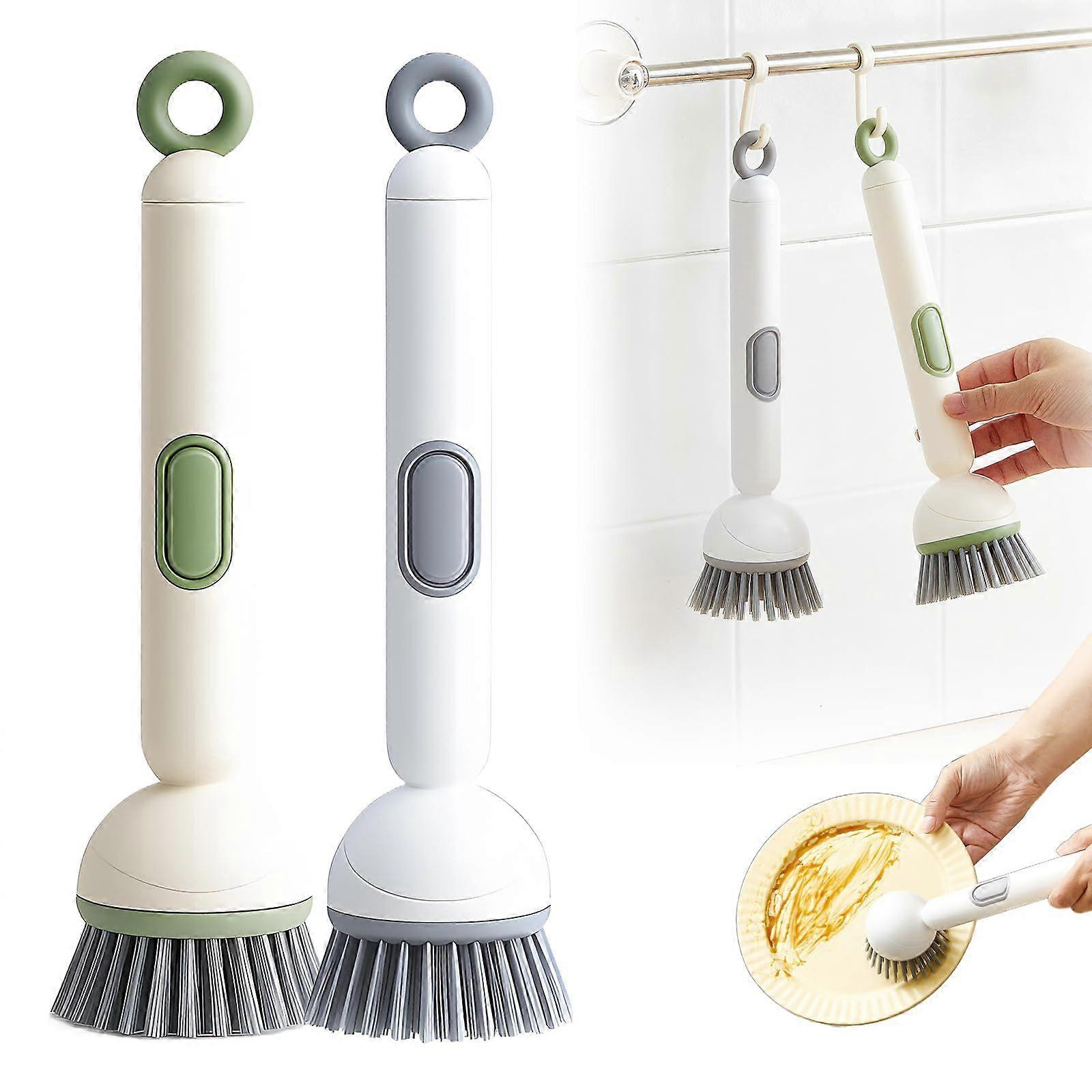 2PCS Adjustable Cleaning Brush with Liquid Dispenser, Ergonomic Kitchen Dish Brush, Durable Handheld Scrub Brush for Efficient Sink, Dish, and Home Cl