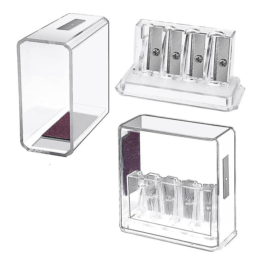 2 Pcs Carpenter Pencil Sharpener Long Manual Pencil Sharpener With Plastic Lid 4 Holes Handheld Pen