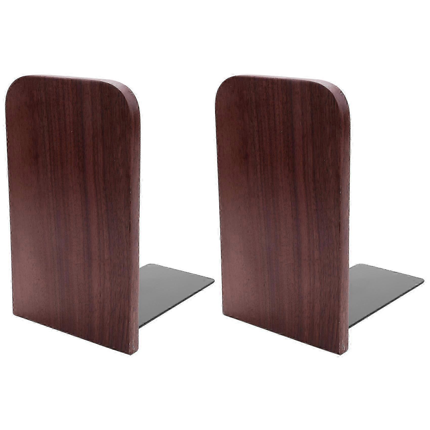 2pcs Metal-Enhanced Wooden Bookends with Anti-skid Dots for Office - Black Walnut