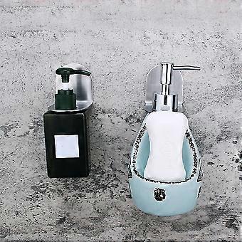 2pcs Stainless Steel Wall Mounted Hand Sanitizer Holder Hanging Rack Shampoo Shelf for Kitchen Bathroom (Large Hole+Small Hole)