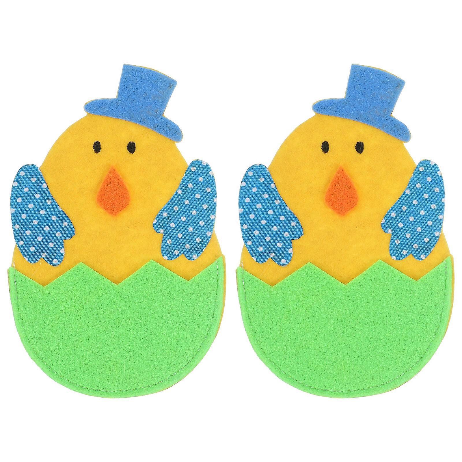 2pcs Easter Cutlery Holder Decorative Chicken Shape Forks Cutter Utensil Bags