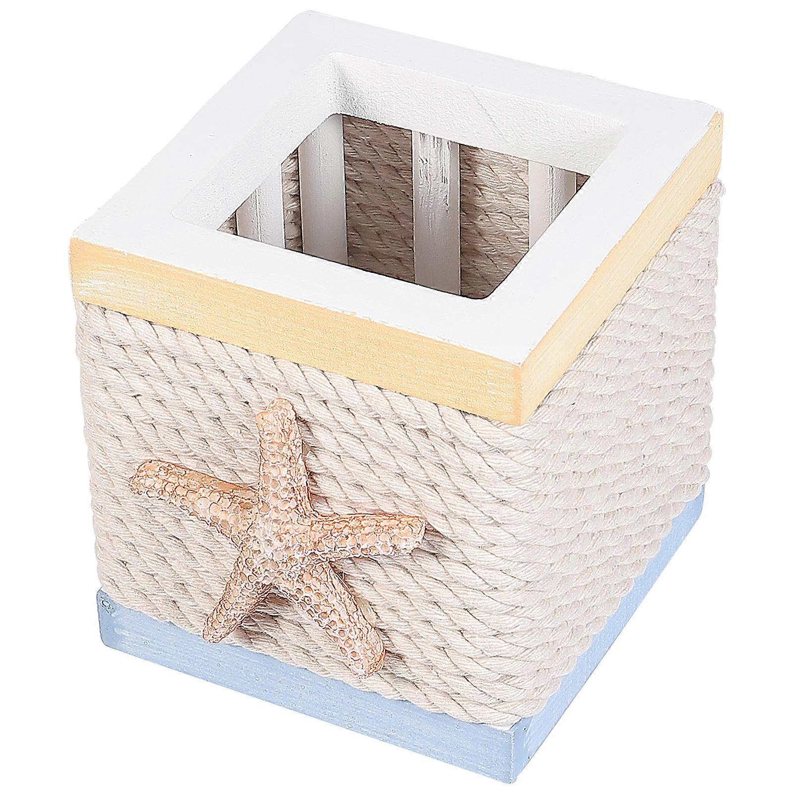 2Pcs Wooden Pen Holder for Office Desktop Mediterranean Style Organizer