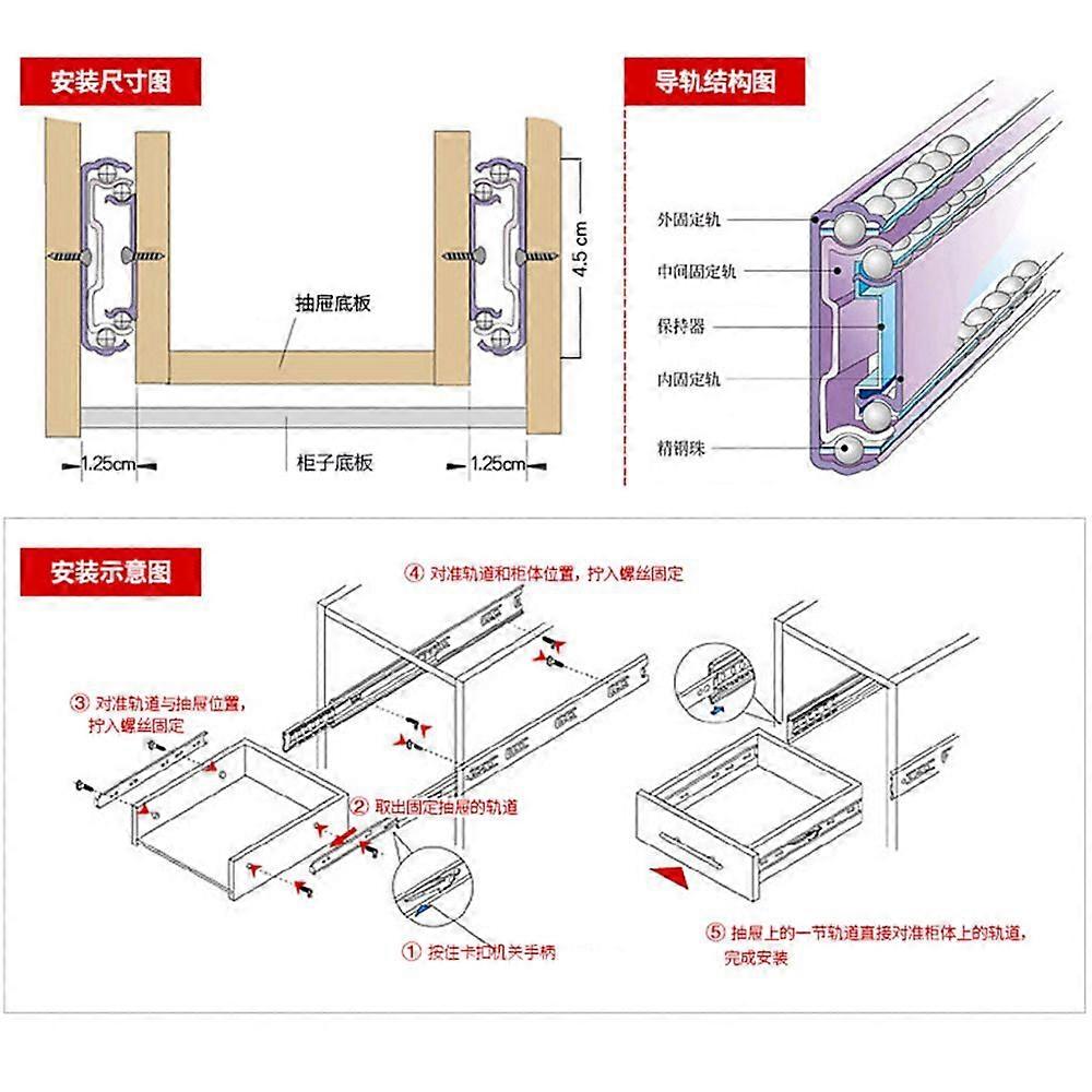 2pcs side mount ball bearing slide cabinet drawer ball bearing 25cm silver