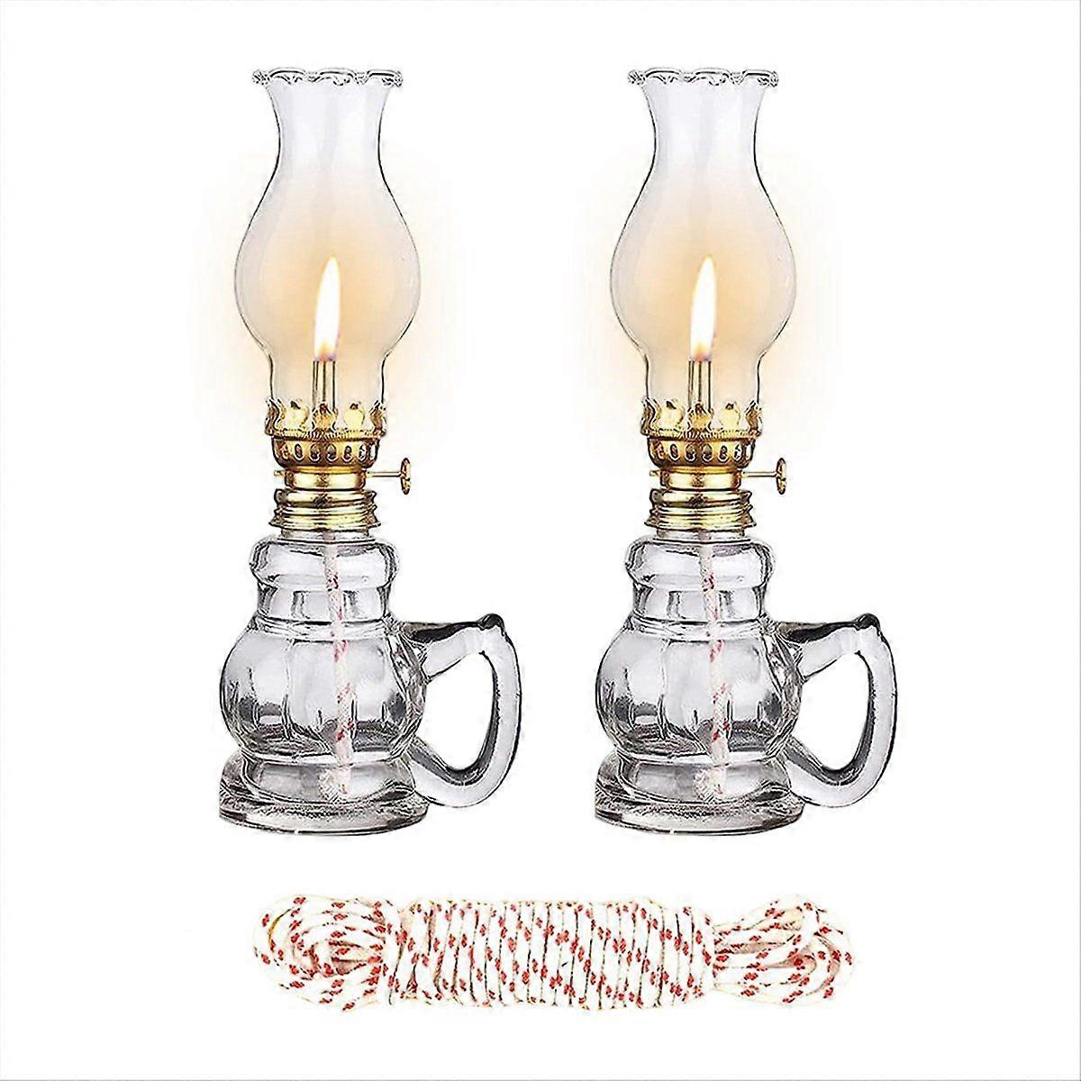 2PCS Chamber Oil Lamp Glass Oil Lamps, Home Lighting Lamp Clear Lamp Lantern, Oil Lantern for Table
