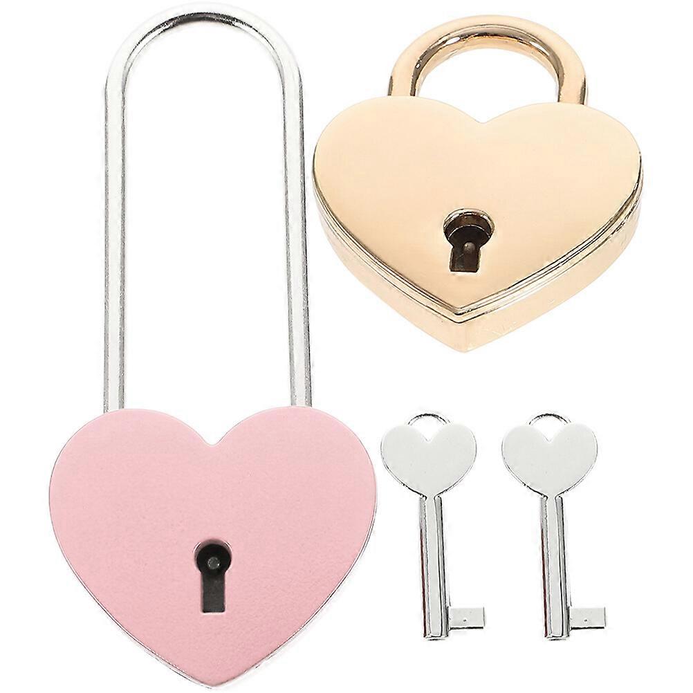 2Pcs Heart Shaped Padlocks Delicate Heart Lock Portable Luggage Lock Handbag Diary Lock