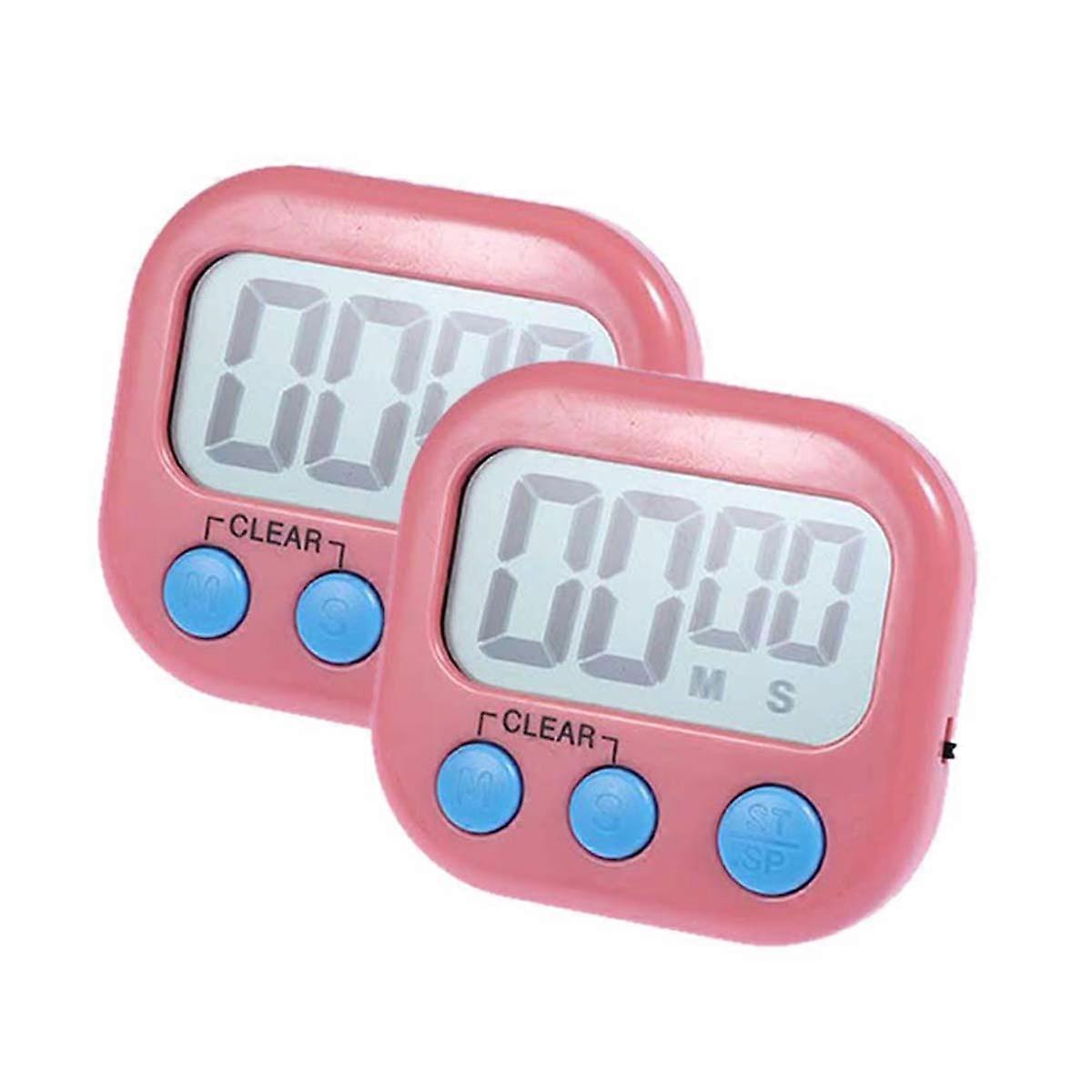 2pcs LCD Screen Digital Kitchen Cooking Timer Count Down Up Clock Loud Alarm Magnetic Ultra Thin Timing Device for Laboratory - No Battery (Pink)