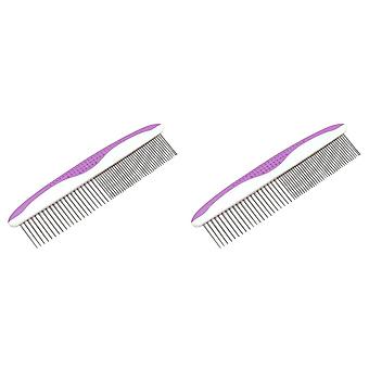 2pcs Pet Grooming Combs Stainles Steel Round Head Pet Flea Comb Single Row With Nonslip Grip (purple