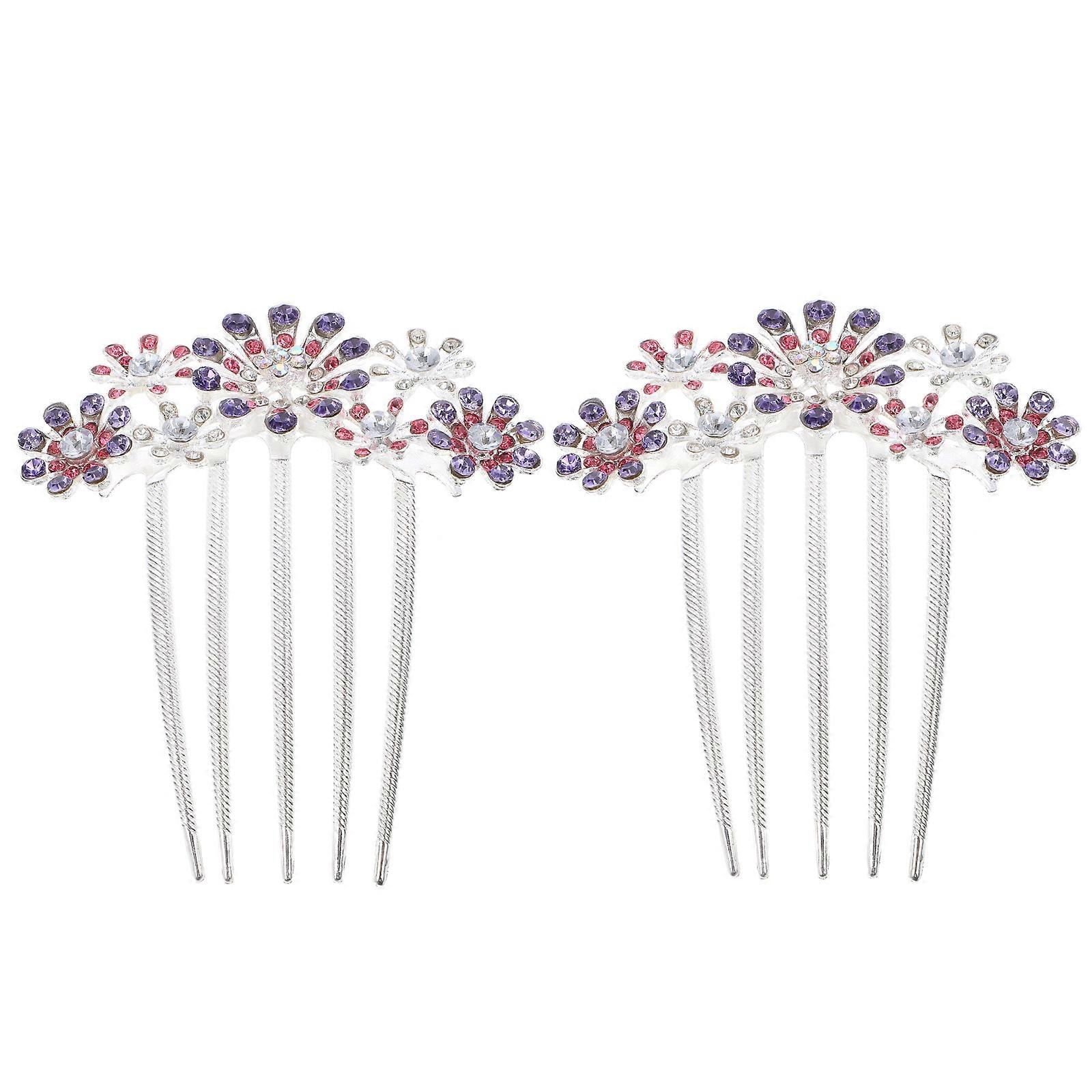 2 Pcs Fashion Hair Comb Handmade Flower Crystals Headdress Alloy Bride Hair Accessories Bridesmaid Hair Decoration (Purple)