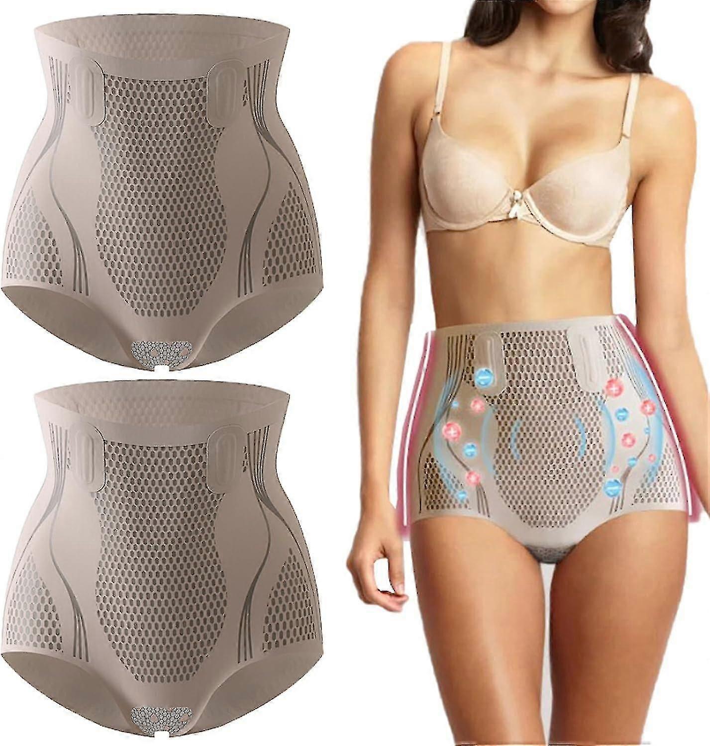 2pcs Ice Silk Ionic Fiber Repair Shaping Underwear,graphene Honeycomb Fiber Restoration Shaper,high Waisted Tummy Control Pants Shapewear Women