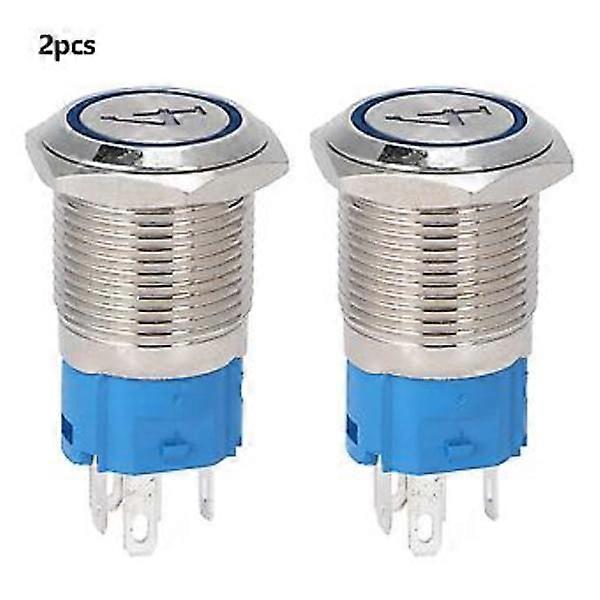 2 Pcs 5-Pin Metal Push Button Switch 16mm Flat Head Self-Reset Switch with Light Number 4 (3-6VDC Blue) for DIY Projects, Vehicles and Industry