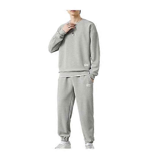 2Pcs/Set Men Sportswear Set Round Neck Long Sleeve Pullover Tops Elastic Drawstring Waist Pockets Sweatpants Set Waffle Texture Athleisure Suit