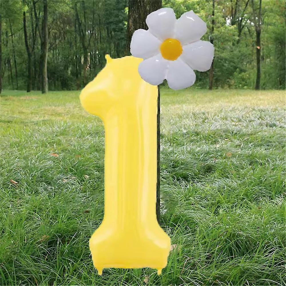 2pcs White Daisy Balloons Set Macaron Yellow 40inch Number Balloon 0-9 Kids Birthday Party Decorations Baby Shower Air Globes