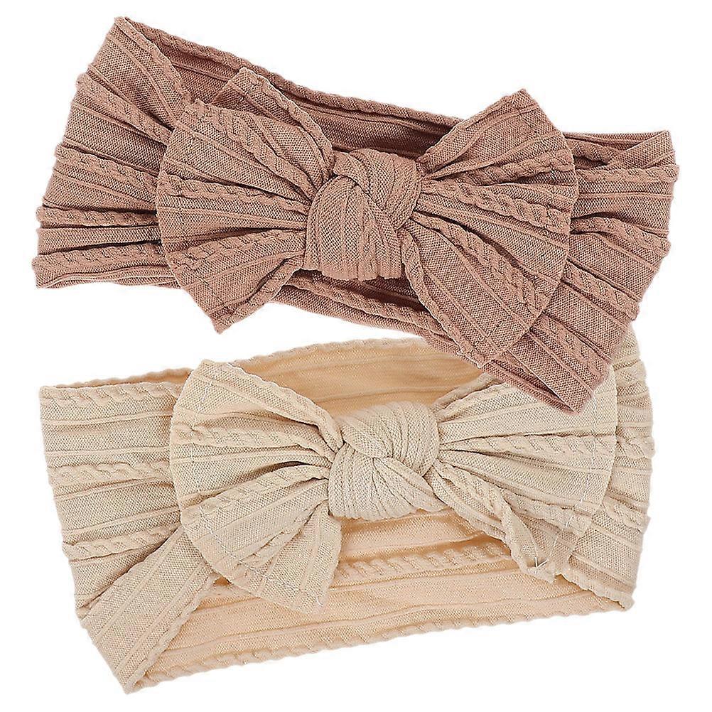 2pcs Soft Nylon Bow Headbands Comfortable Elastic Design Adorable Hairbands for Newborn Flexible Styling Hair Accessories
