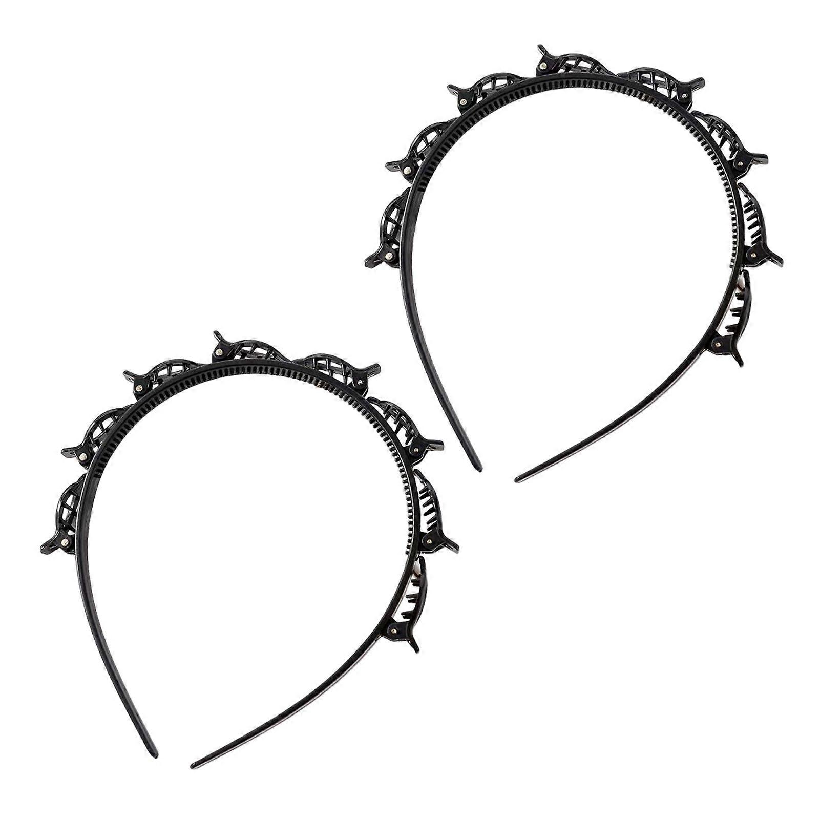 2Pcs Women Headband with Clips Double Layer Design Anti-slip Hairband Bang Braided Hair Hoop Hair Accessories