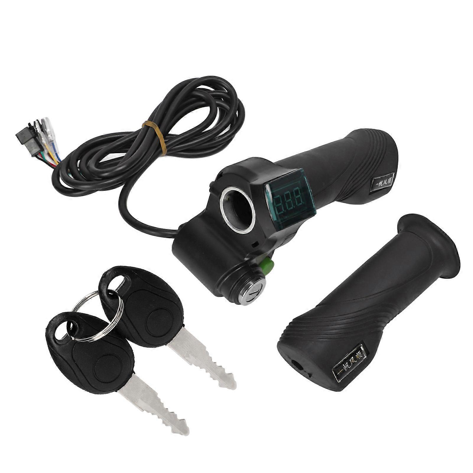 2 PCS Electric Bike Throttle Handle Kit Speed Control Handle Grip with Red Font Screen Lock Key Bike Retrofit Accessories
