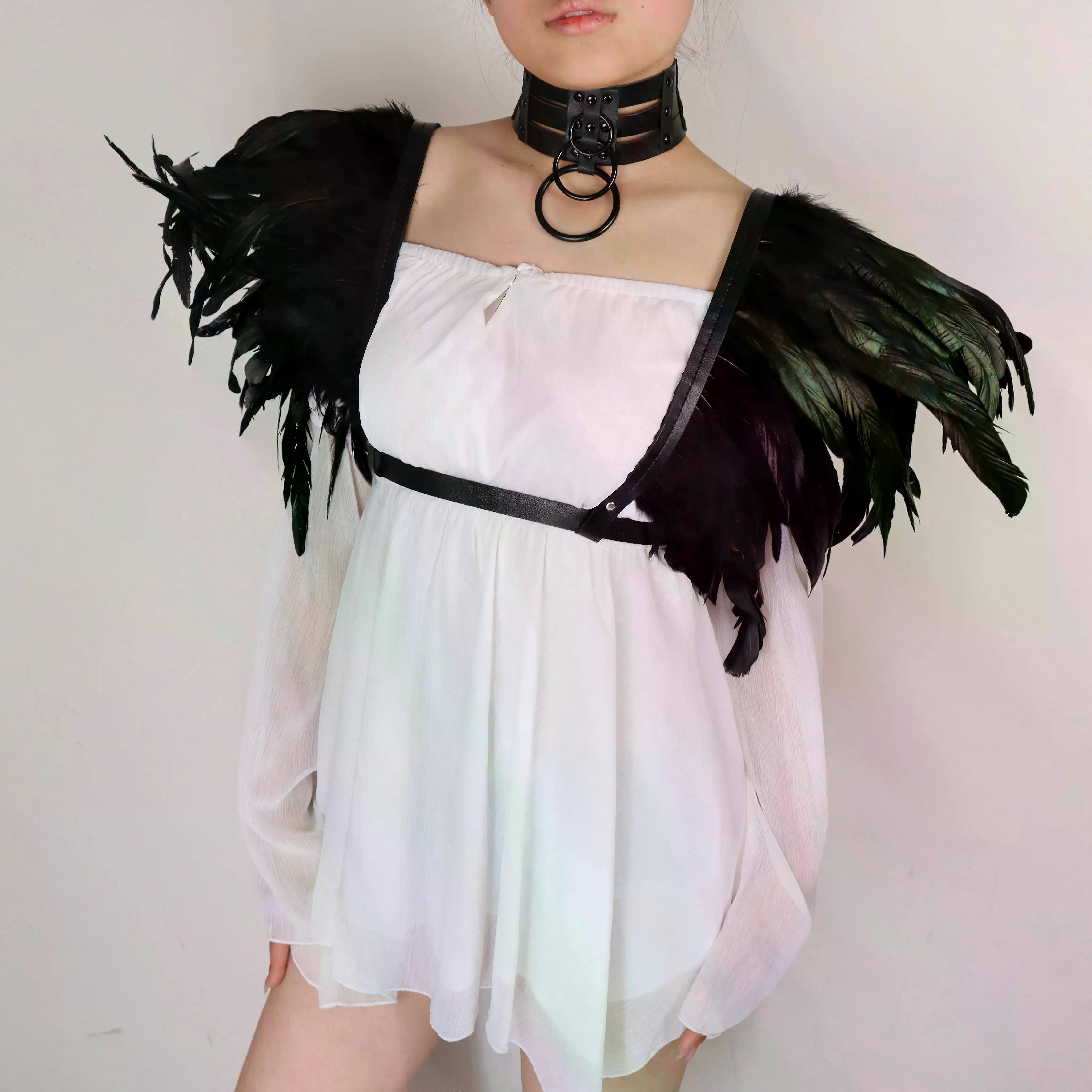 2PCS Punk Medieval Halloween Feather Shawl Shrugs Bolero Shoulder Wrap Cape Party Cosplay Rave Carnival And Gothic Chocker