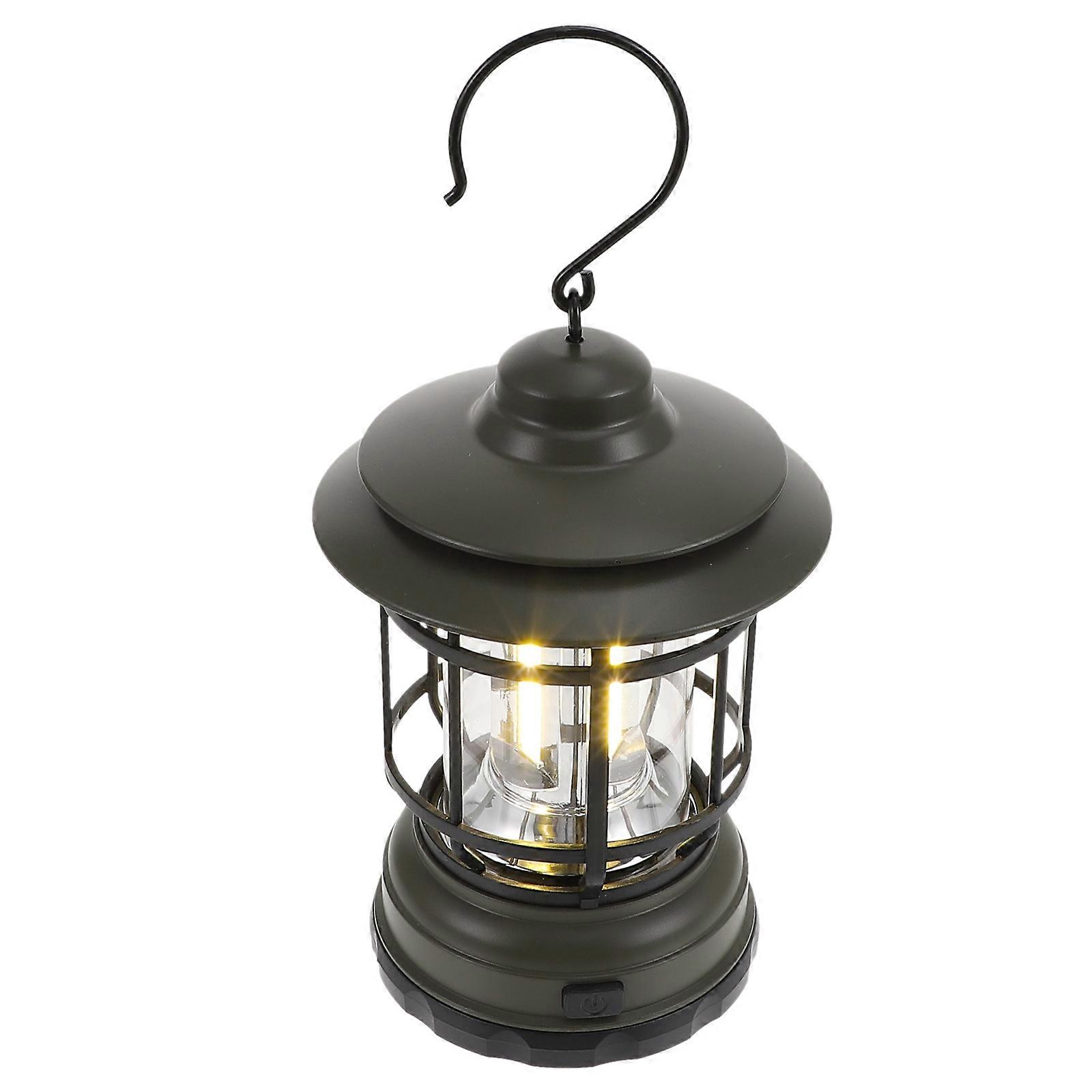 2Pcs Vintage Portable Camping Light Multi-Function LED Lantern Green Color For Outdoor Trips Emergency Situations