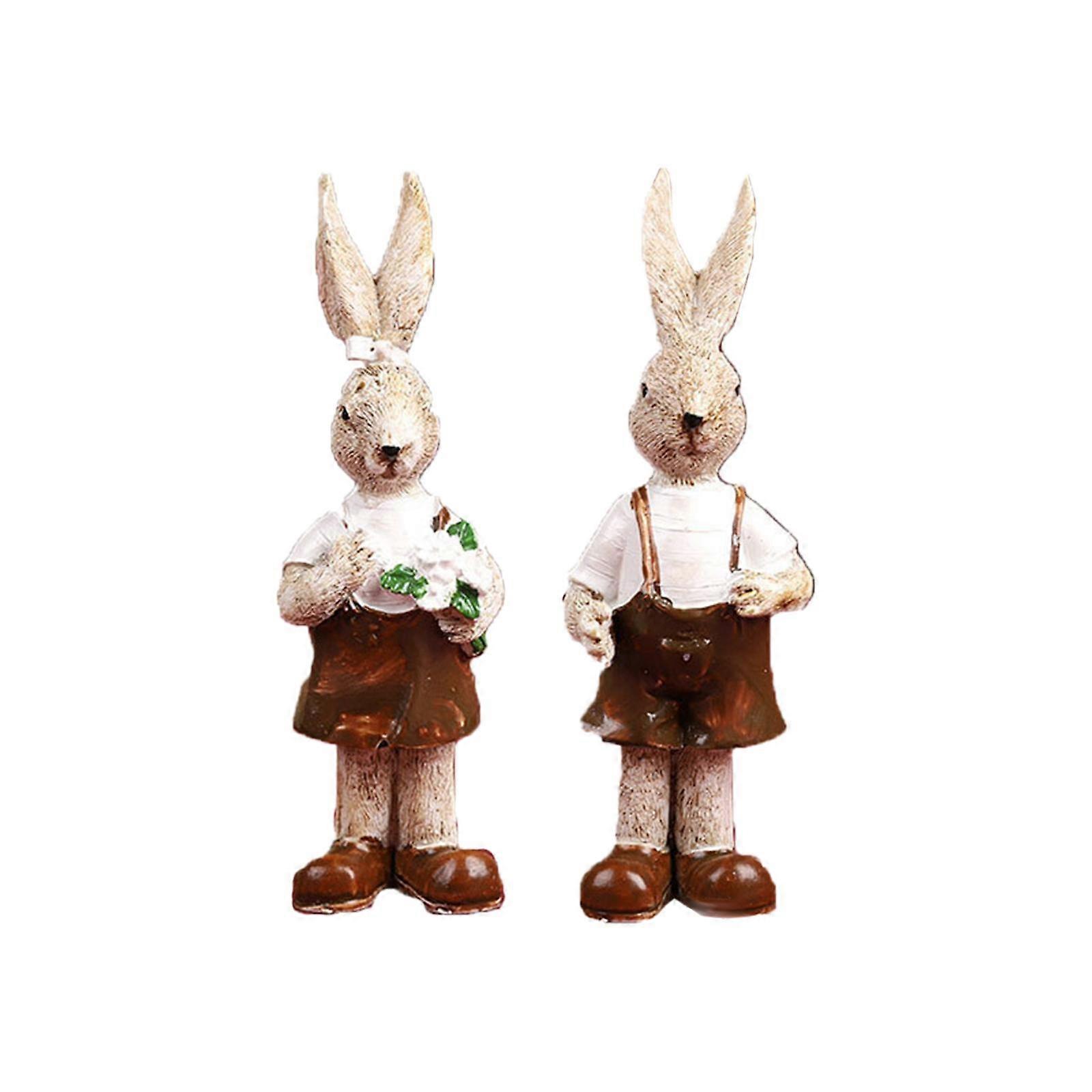 2Pcs Rabbit Garden Statues Miniature Figurine Flowerpot Decor Desktop Craft Ornament for Porch Living Room Patio Cabinet Lawn