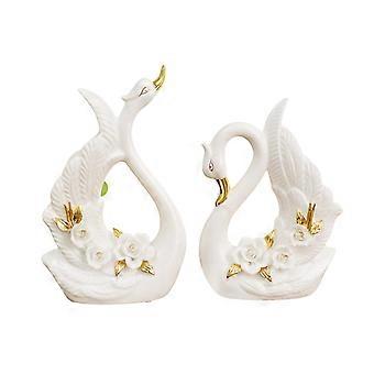 2Pcs Swan Figurine Decorative Statue for Bedroom Cabinet Table Centerpiece