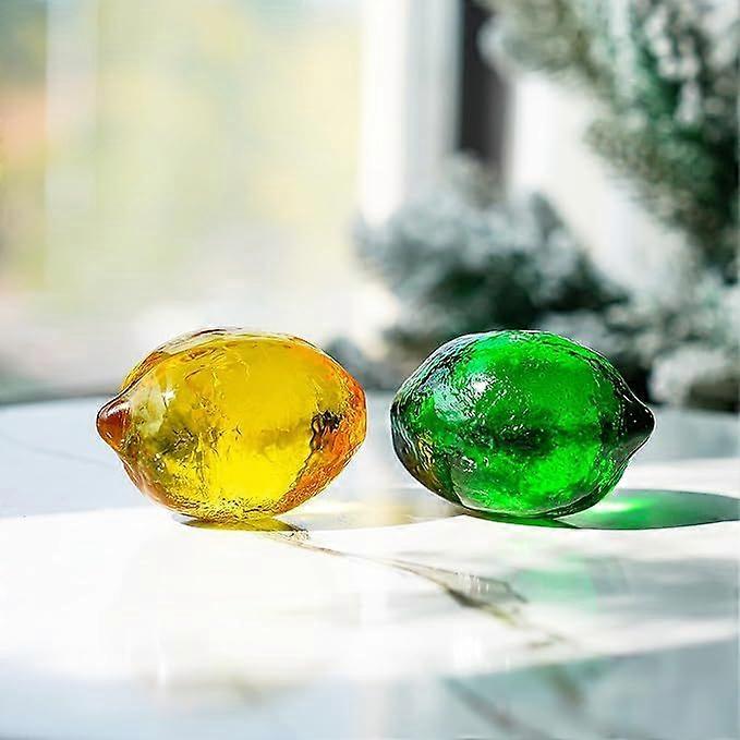 2pcs Glass Lemon Statue Decorative Fruit Ornaments For Kitchen Table Centerpieces Dining Room Table Centerpiece Living Room Supply Artificial Lemon De